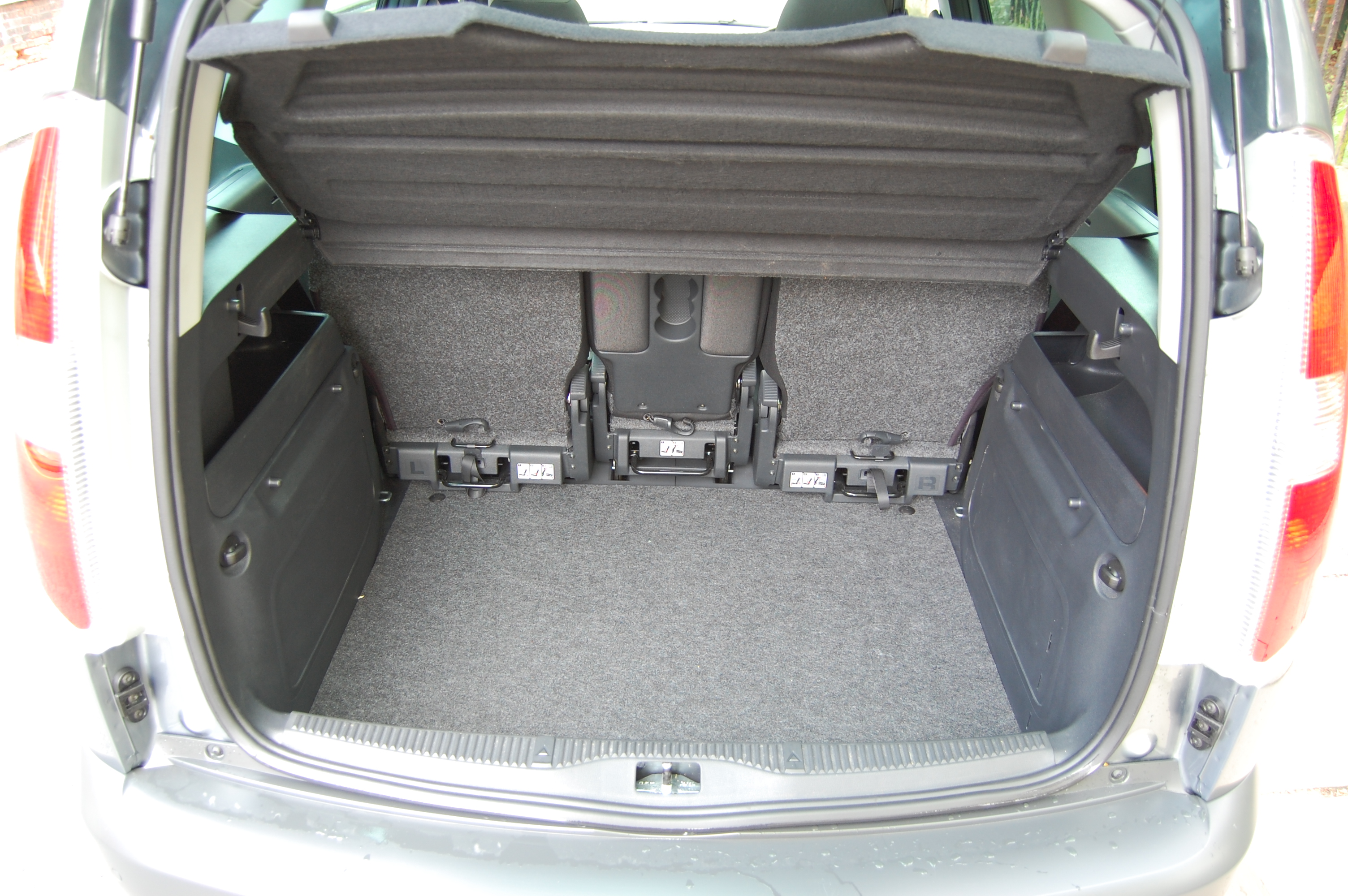 Although the seats slide fore and aft, the Roomster’s supermini origins are most apparent in its width, meaning the middle seat is considerably narrower than the outer pair. It’s not useless but the seat represents the shortest of Roomster straws, being only really wide enough for a child who’s old enough not to need a booster cushion. If you travel four up more often than five up, it makes more sense to tumble the seatback forward and use the armrest and cupholders that are moulded into it.