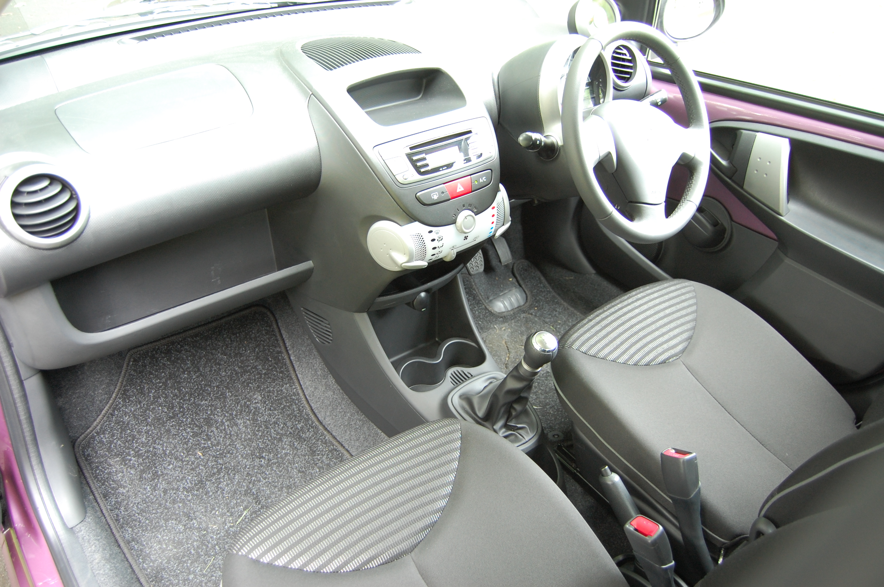 Elsewhere, new wheel trims and alloys, revised tailgate badging, a deeper shade of red for the tail light surrounds and some vibrant new colours like this shade of metallic plum make it look contemporary. Inexpensive yet effective changes but they can’t disguise the 107’s age.