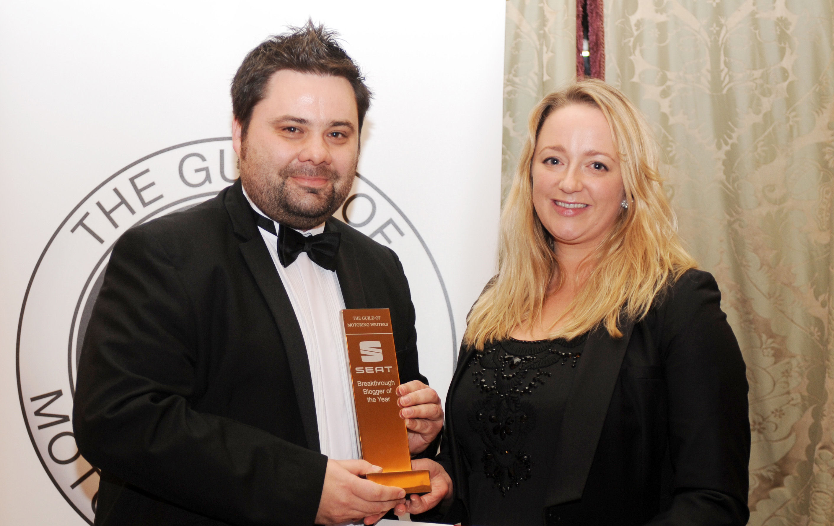 Keith WR Jones receiving the Guild of Motoring Writers Breakthrough Blogger Award from SEAT’s Juliet Carrington